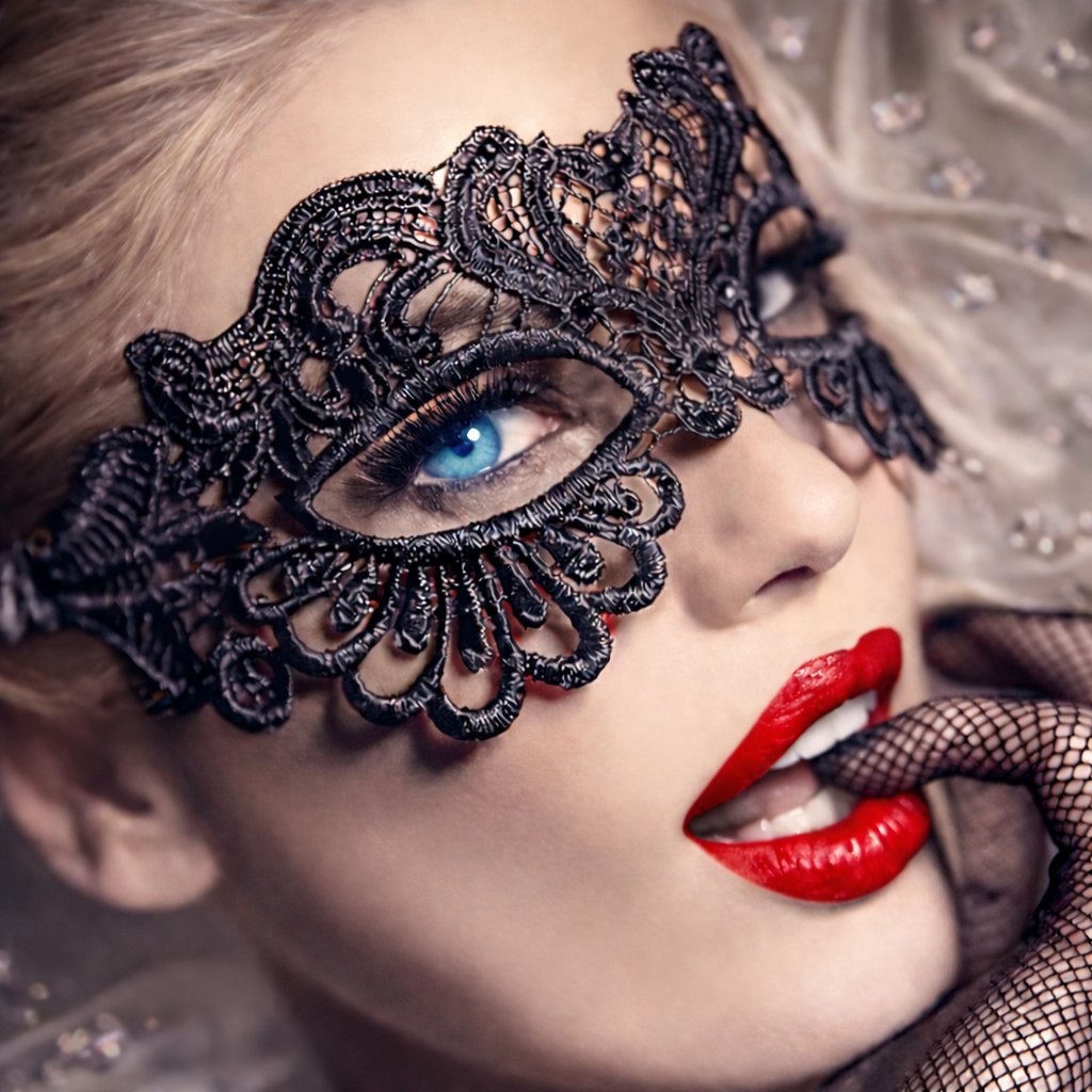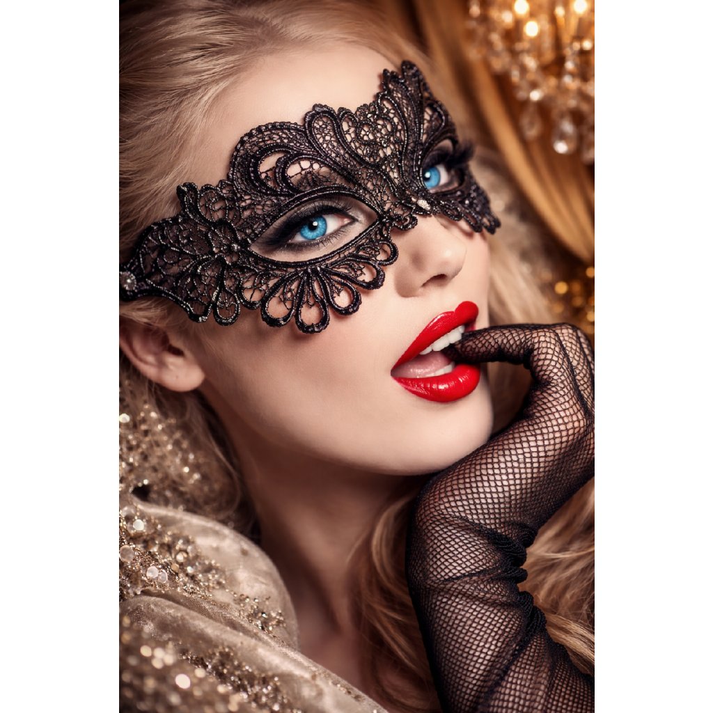 Čierna maska z jemnej čipky, ktorá navodí tajomno